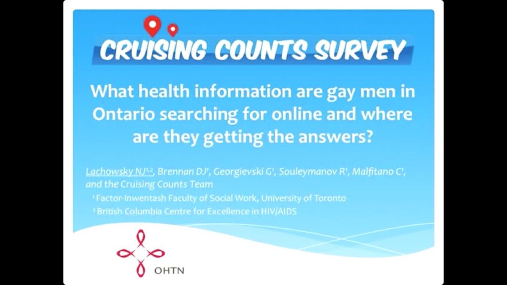 Lachowsky, N.J.; Brennan, D.J.; Georgievski, G.; Souleymanov, R.; and Malfitano, C. (2014, October). What health information are gay men in Ontario searching for online and where are they getting the answers Presented at the Gay Men’s Health Summit, Vancouver, Canada.