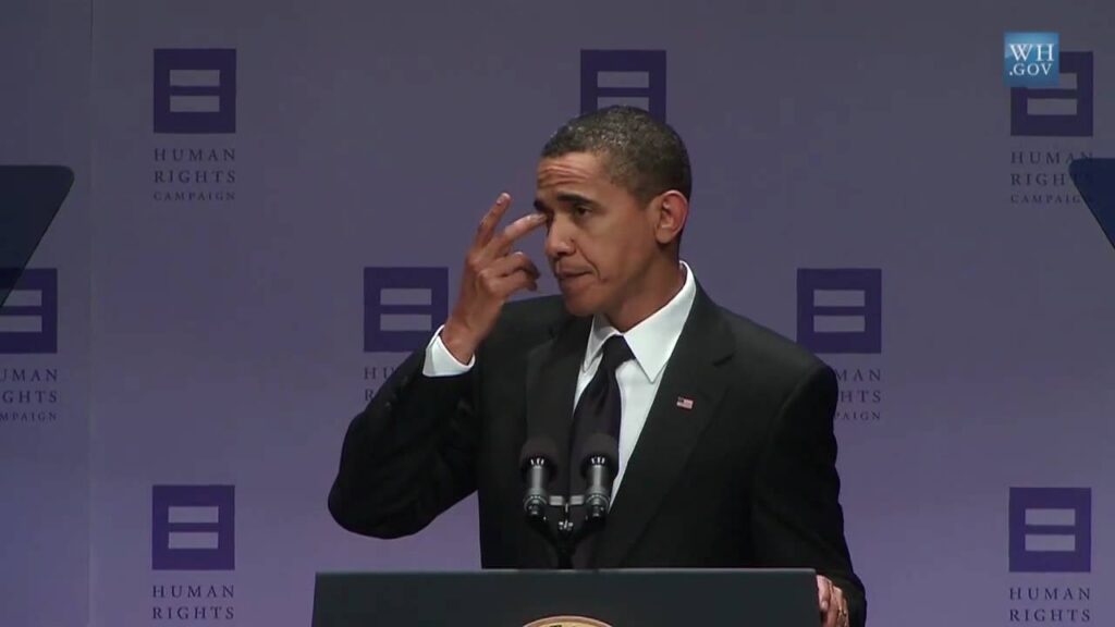 In remarks to the Human Rights Campaign, the President speaks in support of gay rights, including the repeal of “Don’t Ask Don’t Tell” and DOMA. October 10, 2009. (Public Domain)