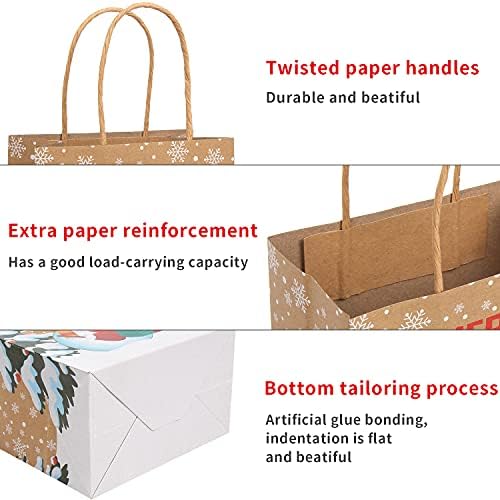 VEYLIN 12 Pack Xmas Kraft Gift Bag With Handle and Tag Tissue Paper for Christmas Present Wrapping Decoration (9.1 x 3.5 x 5.9 Inches)