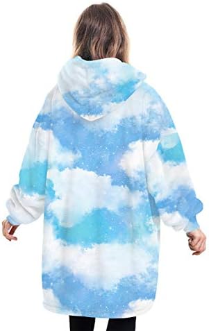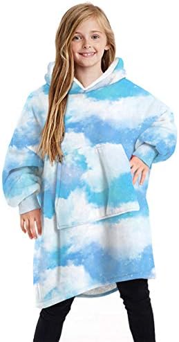 7-13 Years Kid Wearable Blanket Sweatshirt Hoodie for Girl Boy Oversized Double Fleece Plush Cartoon Hooded Top with Warm Front Pocket