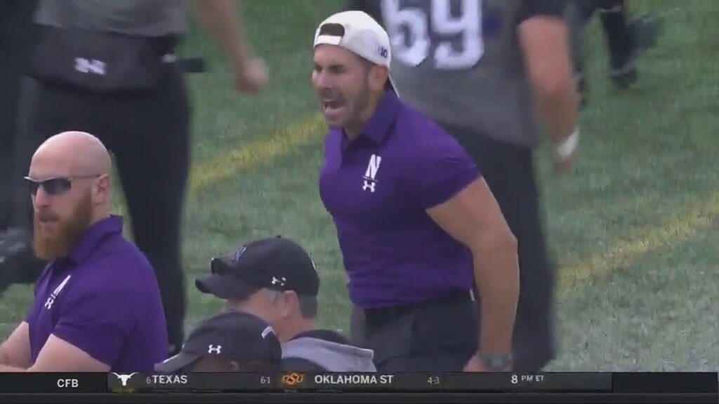 Northwestern Strength Coach Alex Spanos got hyped on the sideline during the Wildcats’ 31-17 upset over No. 20 ranked Wisconsin.