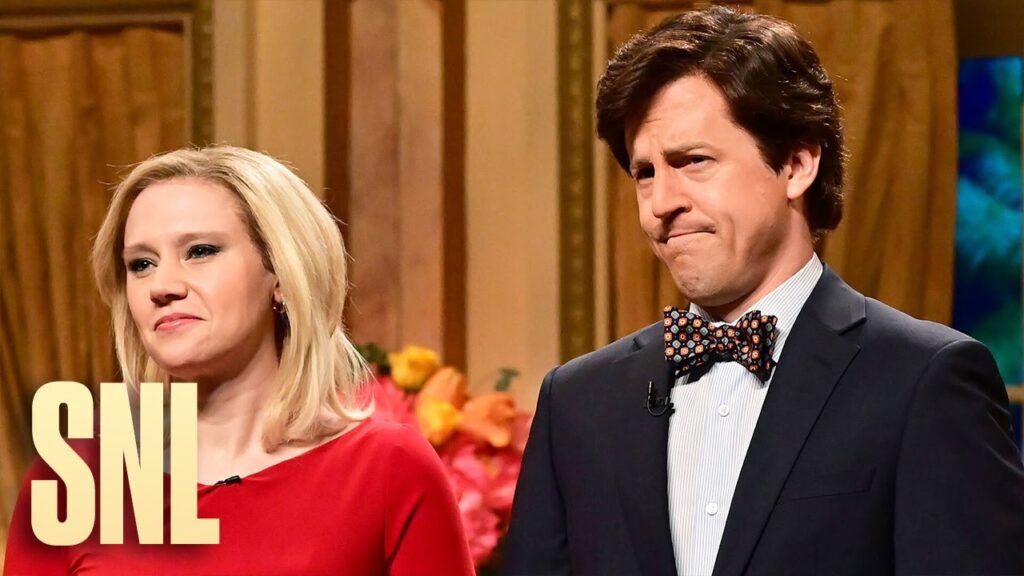 Fox News’ Laura Ingraham (Kate McKinnon) and Tucker Carlson (Alex Moffat) host a Ukrainian Invasion Celebration Spectacular with special guests Donald Trump (James Austin Johnson), Steven Seagal (Bowen Yang), Donald Trump Jr. (Mikey Day) and Kimberly Guifoyle (Cecily Strong).
