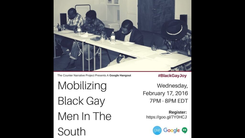 For our February Google Hangout we will discuss strategies and best practices for mobilizing Black Gay Men in the South. We will discuss such issues as stigma, spiritual violence, racism, criminalization, homophobia, patriarchal masculinities, and resilience. Most critically we will also discuss #BlackGayJoy as both a path to healing and a mode of resistance.