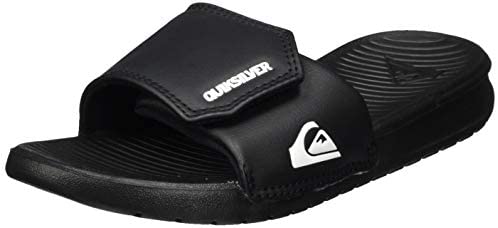 Adjustable bathing shoes for boys 8-16. The features of this product are: water friendly vegan leather upper [2 piece], embossed logo, adjustable Velcro fastening, soft recycled REPREVE jersey lining made of polyester, thick padding, injection moulded footbed with heel cup and arch contours and outsole designed for flexibility and grip.