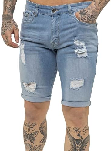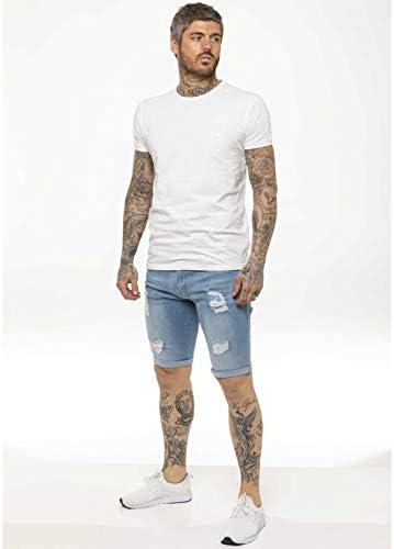 989Zé ENZO Mens Shorts Ripped Skinny Stretch Casual Denim Half Pants, 2 Front Pockets, 2 Back Pockets and 1 coin Pocket to Keep your Belongings Safe, Branded Button and Rivets, Easy and Comfortable to Wear, Ideal for Casual or Workwear, Perfect to Pair with Tees and Tops, Can Be Worn in Summer, Autumn and Spring, Ideal for any Occasion including Holidays, Beach, Outdoors, Traveling, Walking, Staying in and Loungewear, Available in 5 Colours including Black, White, Blue and Grey, 98% Cotton, 2% Elastane, Machine Washable
