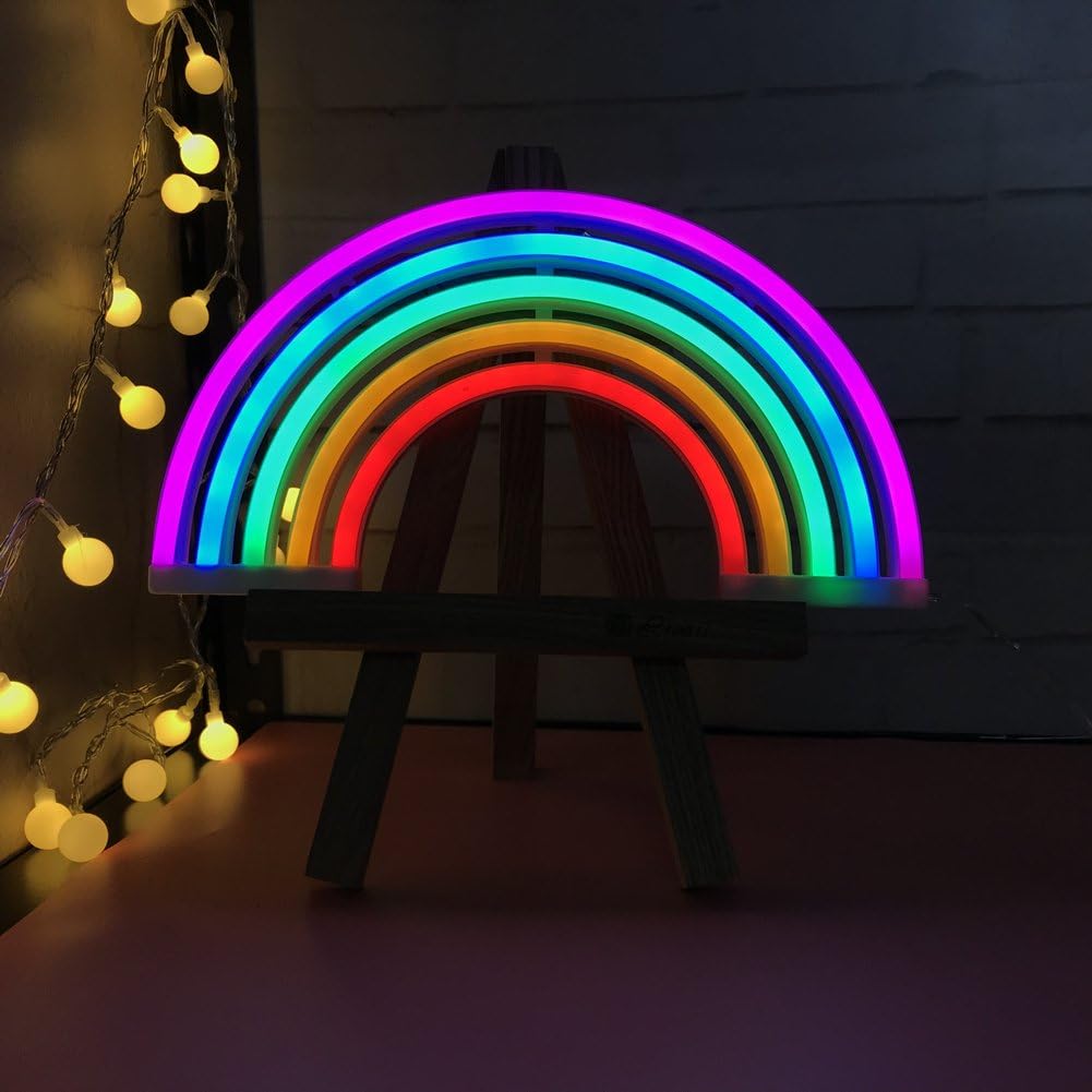 √ UNIQUE DESIGN – Cute rainbow neon sign, it is a wonderful solution for your little ones room decoration. Beautiful and modern decorative neon light. Add vigor to this bedside table with this neon decoration. It provides a romantic atmosphere to your home.
