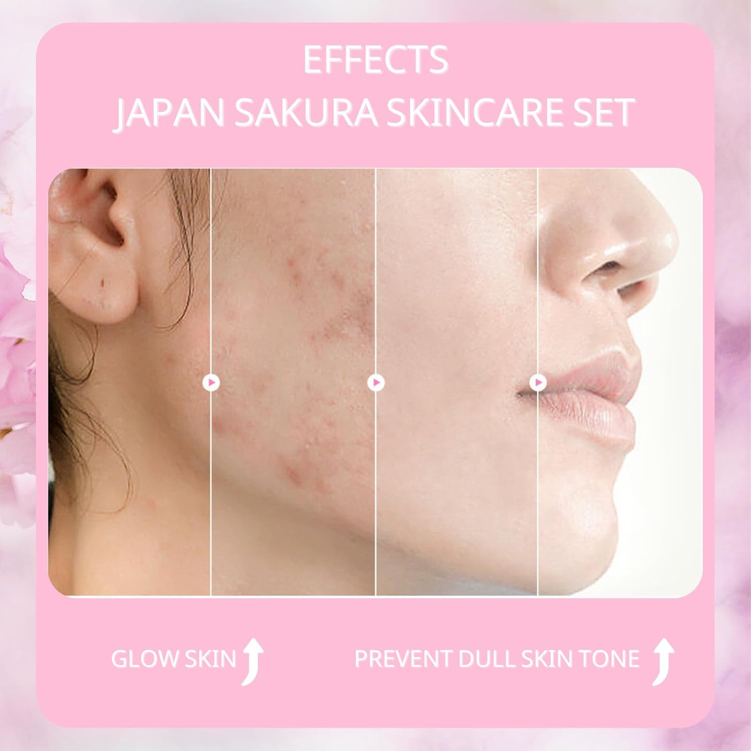 【Gentle & Suitable for All Skin Types】Tailored for all skin types, the Japan Sakura hydration skincare sets are ideal for sensitive skin prone to breakouts and redness. This non-greasy, fast-absorbing Sakura anti-wrinkle skincare set hydrates deeply, tightens pores, and evens out your complexion, making it perfect for daily use