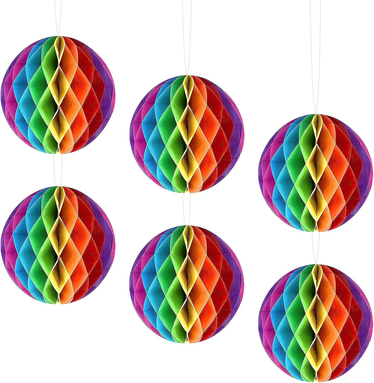 【High Quality Material】: Rainbow Paper Honeycomb Balls are made of safe and environmentally friendly high-quality paper. These Rainbow Paper Honeycomb Balls are durable, reusable, brightly colored and can swing with the wind.
