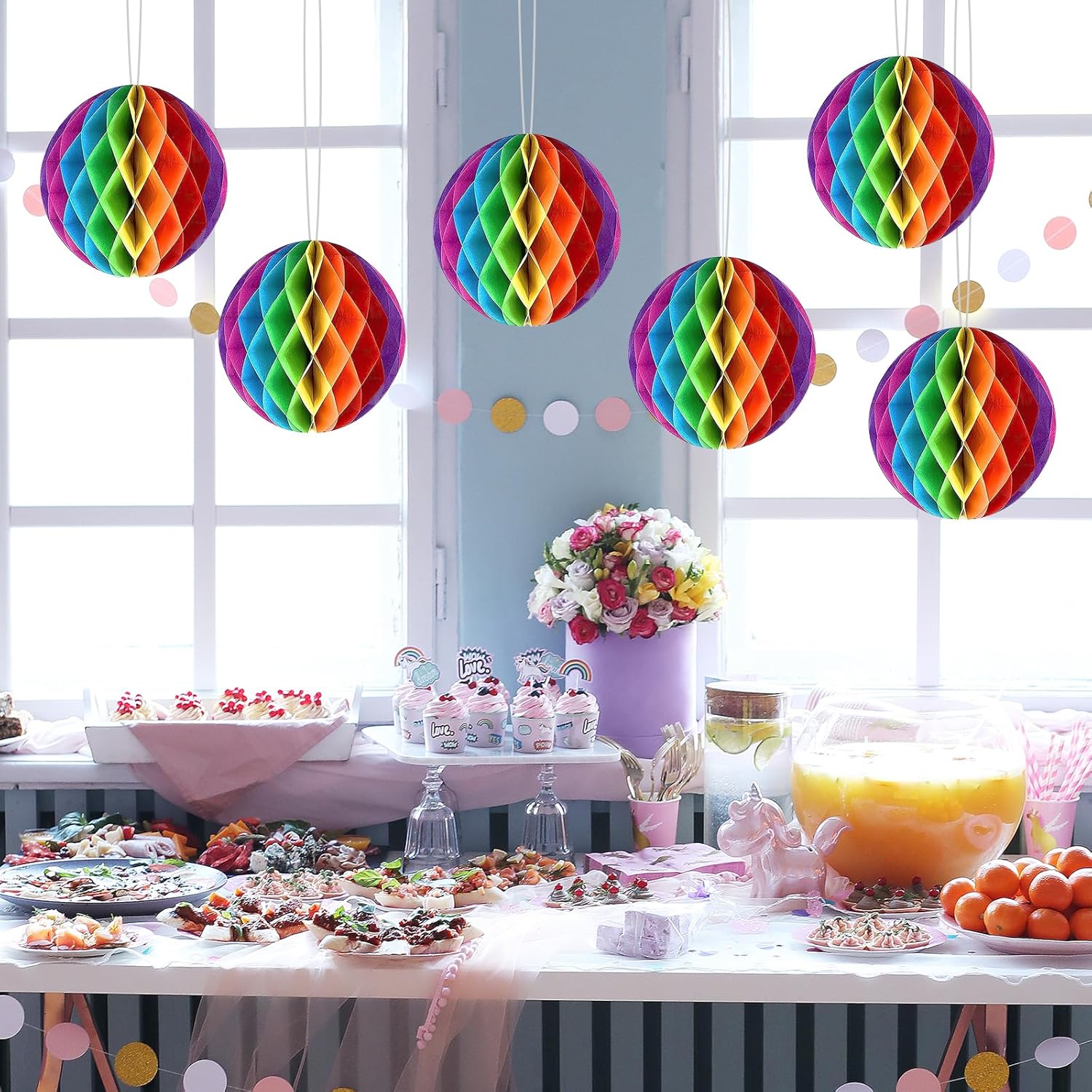 【Package Include】: You will receive 6Pcs Rainbow Paper Honeycomb Balls, each with a size of 6 inches.Decorate your party with it, which can create a happy atmosphere for the party.