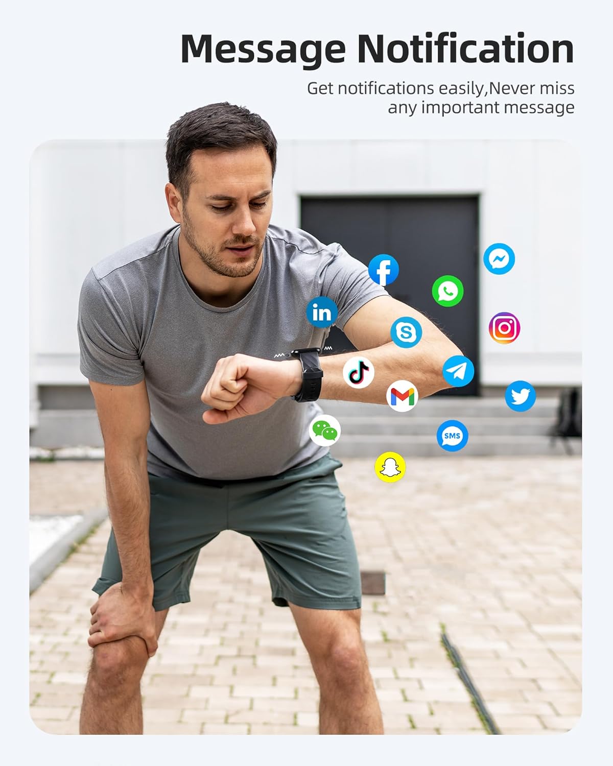 【Fitness Tracker with Over 100 Sports Modes】This smart watch features over 100 sports modes, designed for your diverse lifestyle. During your morning jog, the smartwatch on your wrist accurately records heart rate, steps, pace, calories, and distance, boosting your motivation for every effort. Whether you’re sweating it out at the gym, cycling in the sun, or swimming in the pool, it tracks your every progress. More than just a watch, it is a loyal recorder and motivator on your fitness journey