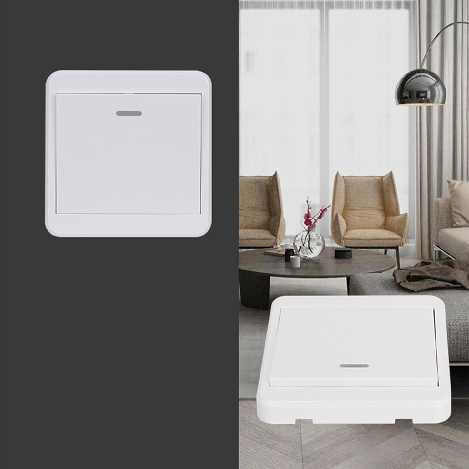 Product size: 4.38*3.78*3.23cm/1.71*1.47*1.26 inches instructions for connecting the remote control and the host: 1. Pairing method: press and hold the light-off switches for about 3 seconds, let its indicator light up and then let , immediately press the remote control, the switches indicator light goes out, that is, pairing is successful. 2. pairing method: press and hold the switches, let its corresponding indicator light up for about 3 seconds. Continue to hold down the switches and let when the indicator light starts to flash, the process is about 10 seconds, then quickly press the switches to clear the pairing.