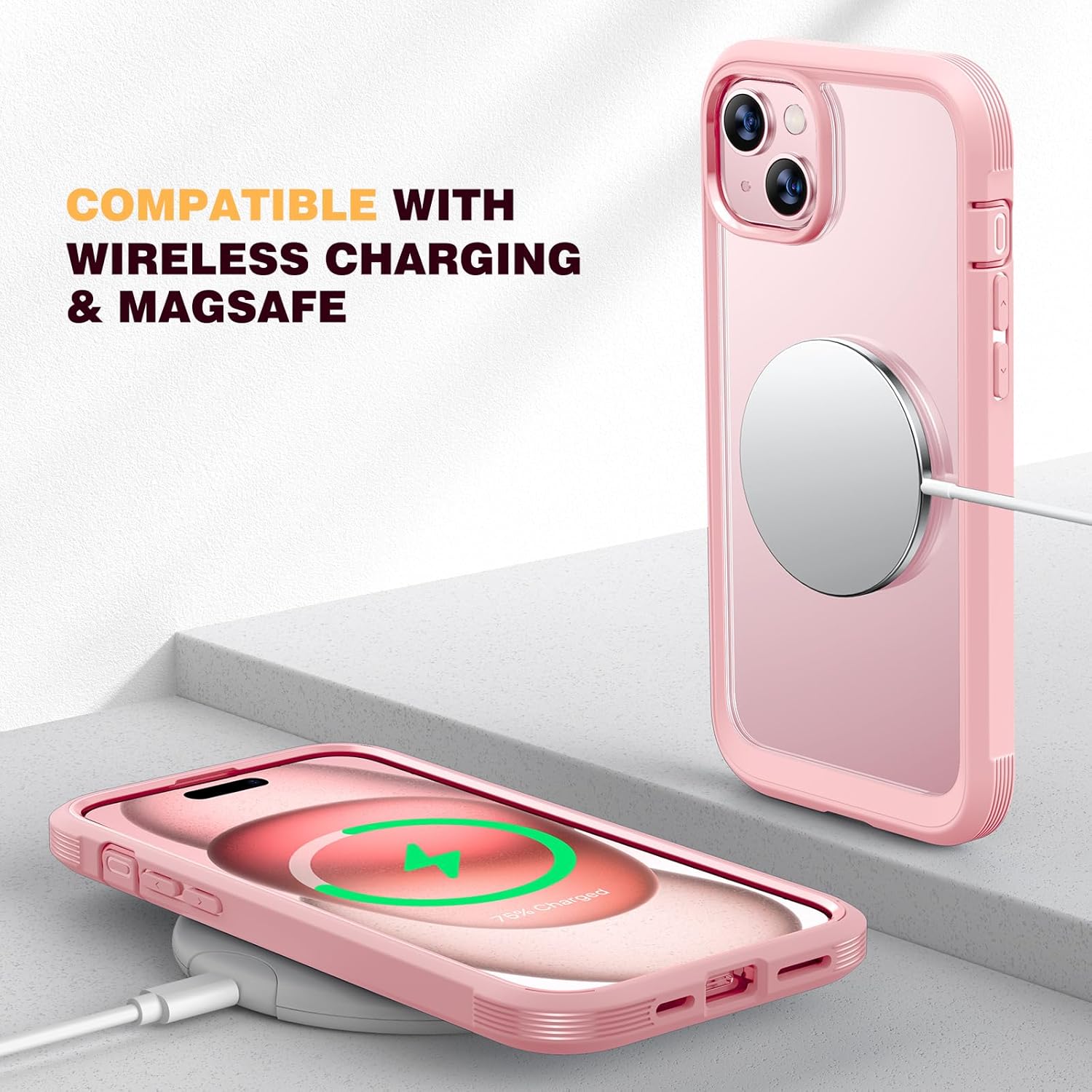 【360 Degree Rugged Protection】 Dual layer provides 360°full body rugged protection. Soft TPU shock absorption and raised 4 corners surround your phone and protect it from accidental drops and falls. With 9H tempered glass camera lens protector designed for iPhone 15 to protect your camera and brings you the original of beauty to every photo and video.