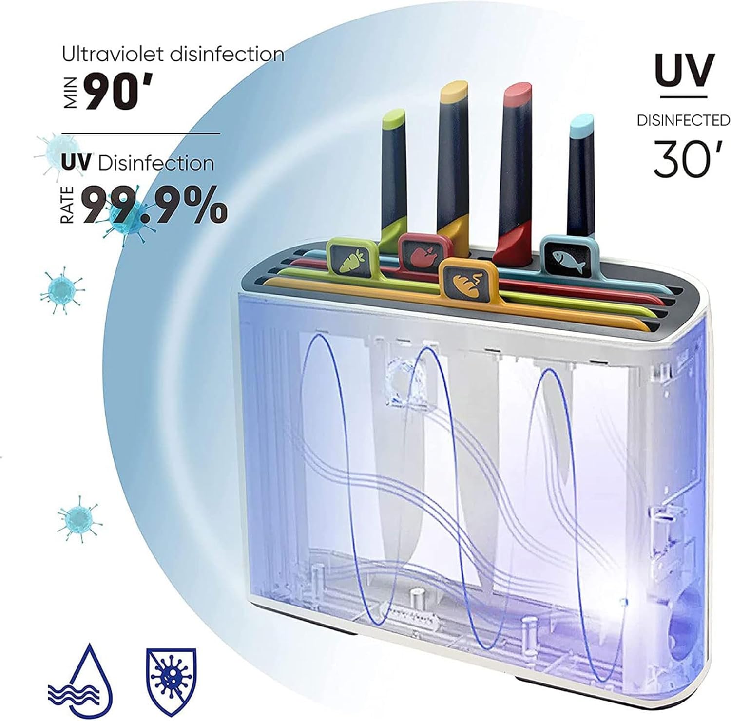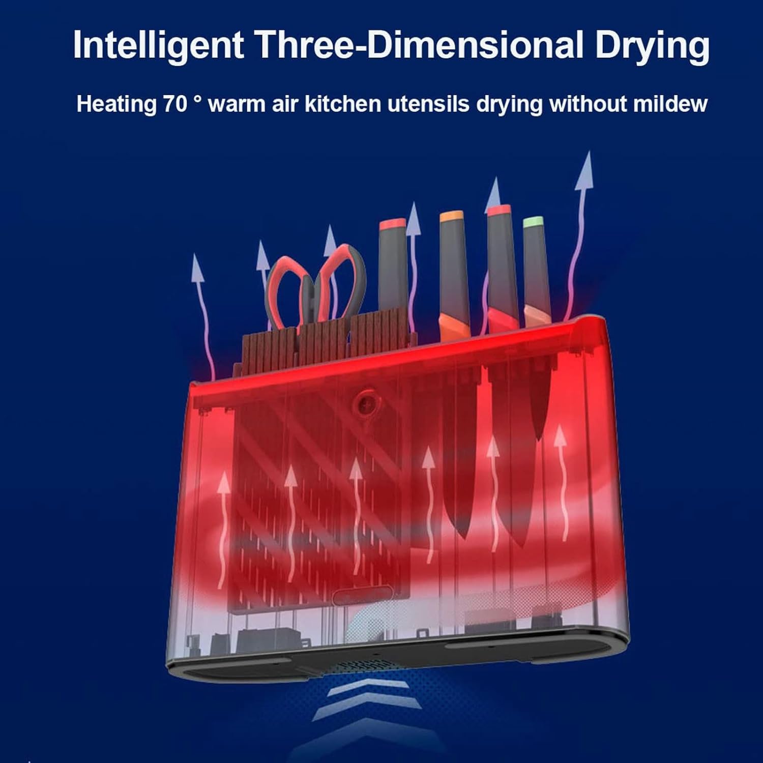 Smart Cutting Board:Experience the convenience of our Smart Chopping Board set. After using the chopping boards and knives, simply wash them and place them on the stand. With just a click of a button, the holder automatically enters timed drying mode, ensuring your chopping boards and knives stay clean and dry.