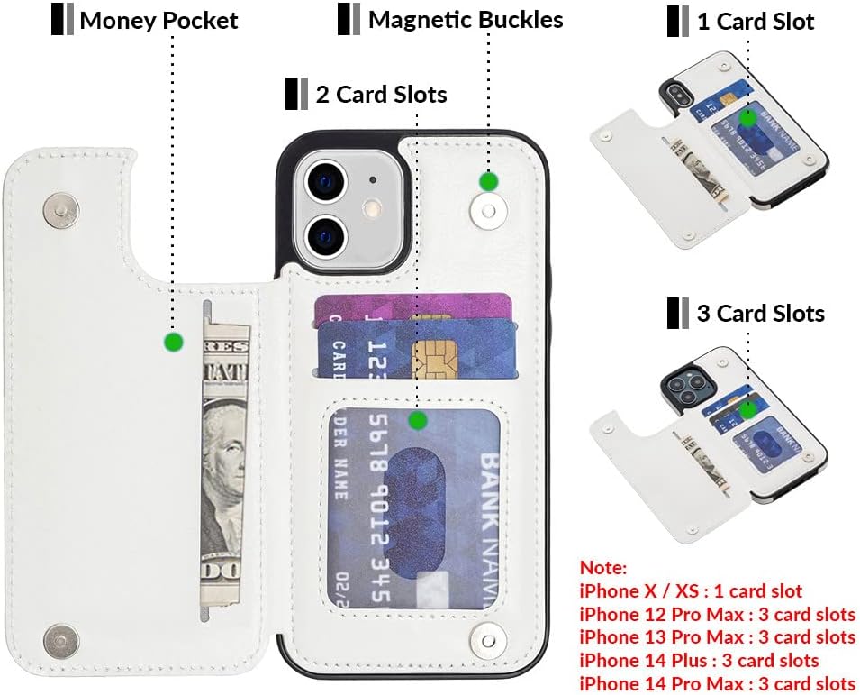 [Durable and Shockproof] : A hybrid wallet back cover composed of a premium PU leather flip and a soft TPU back. The raised rim keeps your phone in extraordinary protection. Against unwanted drops, shocks, bumps, scratches, bruises or stains.