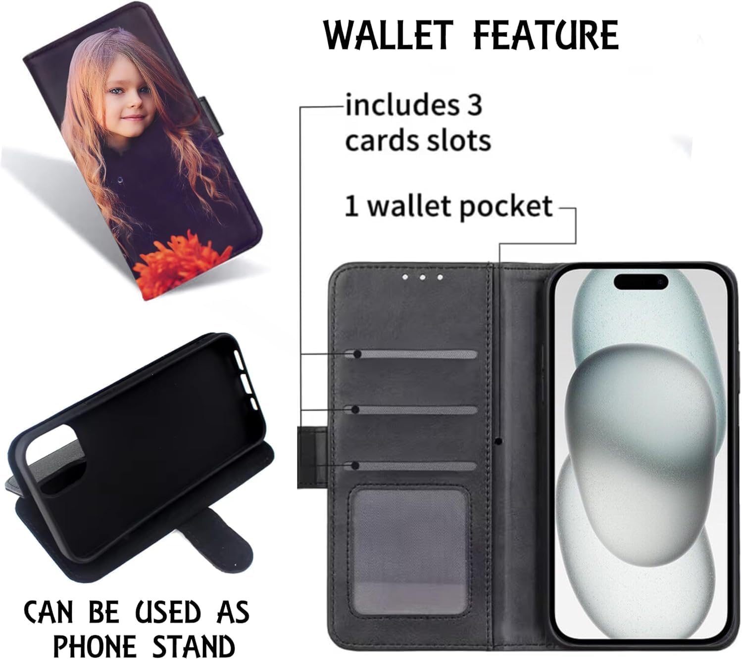Personalised Phone Case for Apple iPhone 16e 2025 Edition 6.1 Inch, Personalised Image/Picture/Photo Custom Design on Leather Wallet Magnetic Side Flip Folio Phone Cover With Card Slots