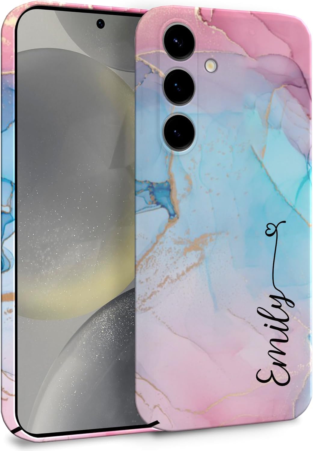 EKAM Personalised Phone Case for Samsung Galaxy S22 Ultra – Fully Printed 3D Marble Design Hard Plastic Bumper Back Cover, Customise Your Own Initial Name Text (Crystal)