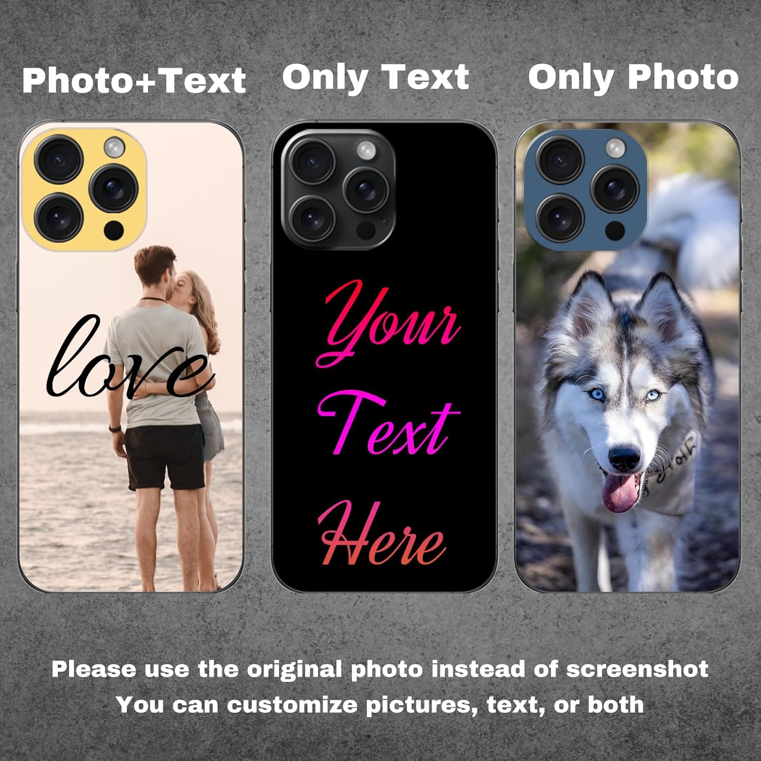【Personalized Photo Phone Cover】 This is a personalized phone case for iPhone, fit for iPhone 7 8 11 12 13 14 15 Pro Max Plus Mini, XR, XS, you can upload the photos of your family, friends or your favorite pictures to design your own phone. This is easy online design, click customize now button and upload your photos on your computer or phone.