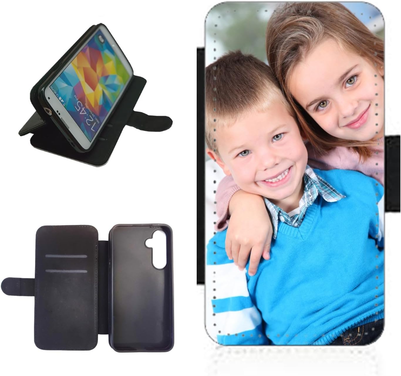 For Samsung Galaxy S24 Ultra personalised phone case wallet flip case photo on the front panel Black