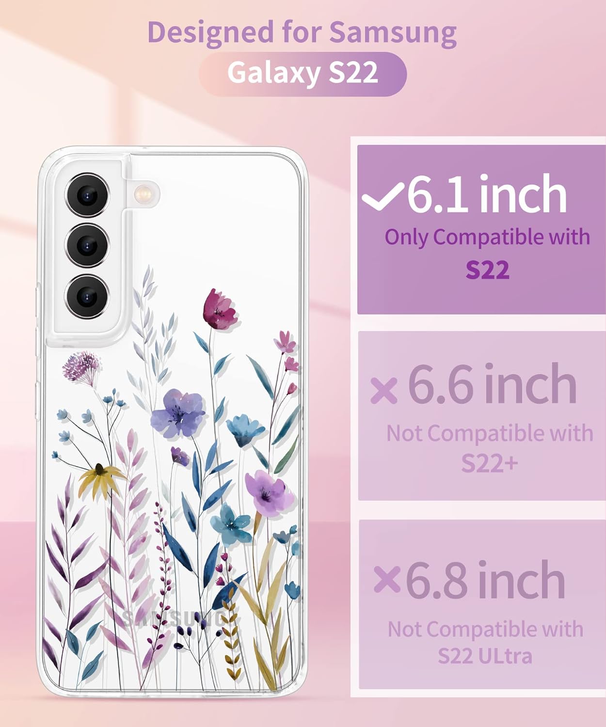 [ Beautiful & Practical ] The fresh flower design adds artistic beauty to the transparent Samsung Galaxy S22 phone case and have the shockproof protective slim soft thin TPU drop protection function, making it the perfect gift for women & girls
