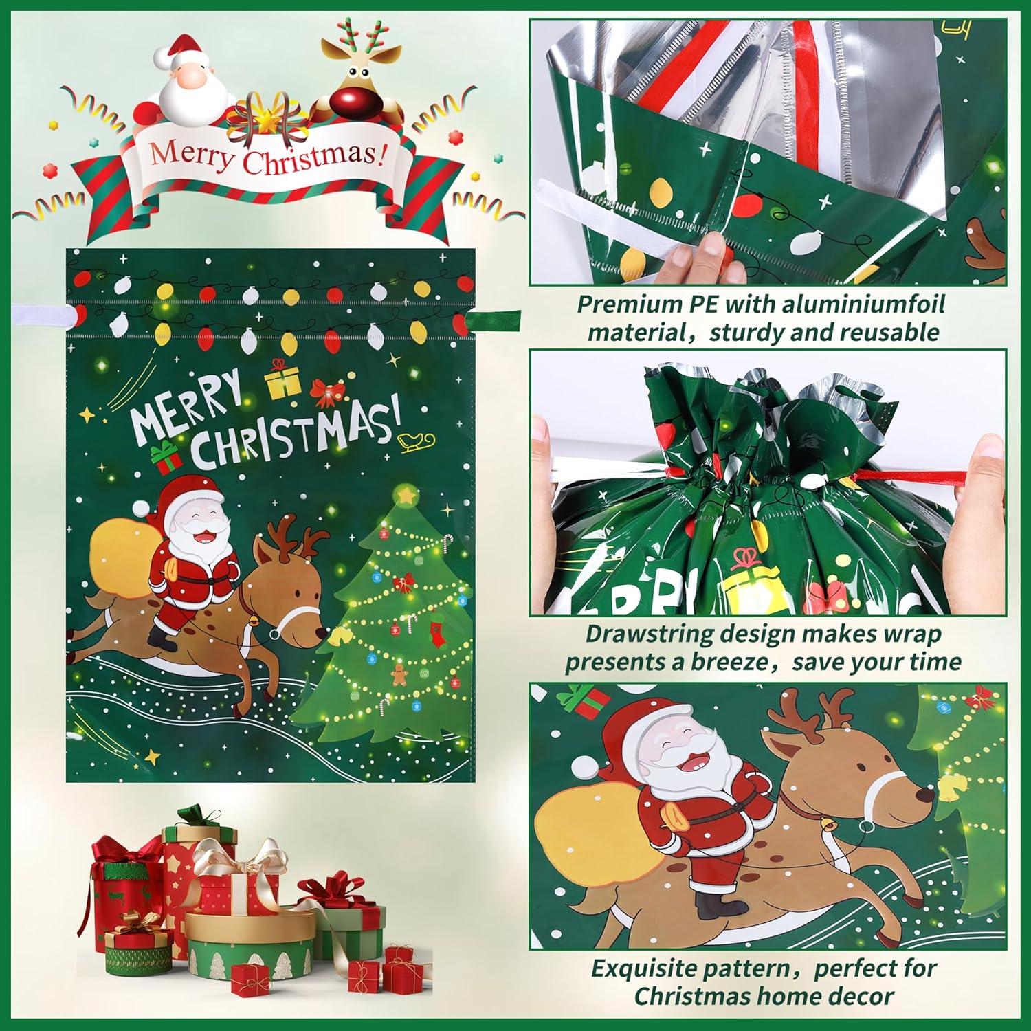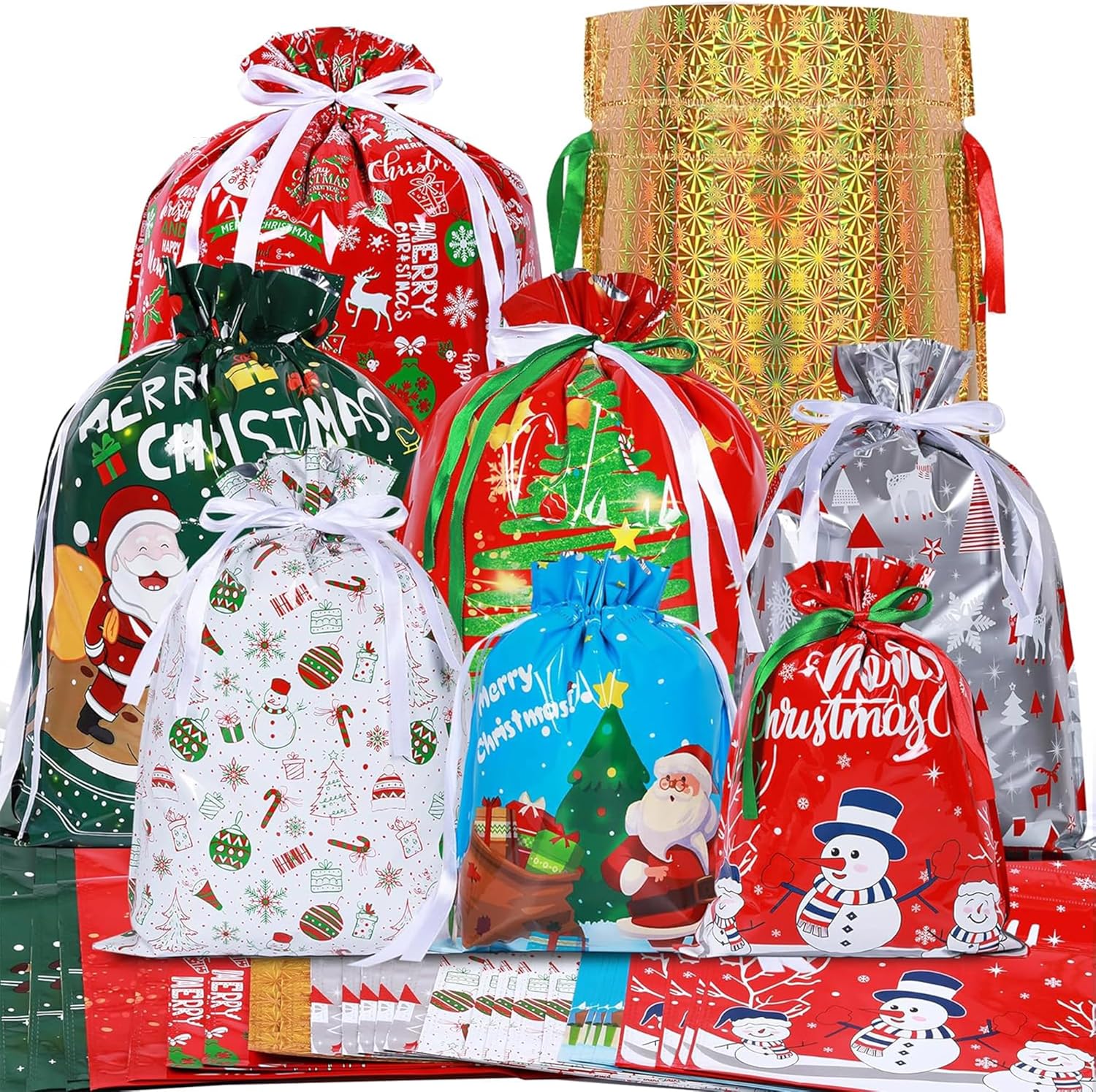 【Easy to Use】: The gift bag is easy to use, just put the gift in the bag, pull the ribbon, tie a bow and you are done. You can skip the hassle of wrapping paper, tape, ribbon, save your time, it’s very convenient. Christmas drawstring bags are the perfect alternative to wrapping paper.