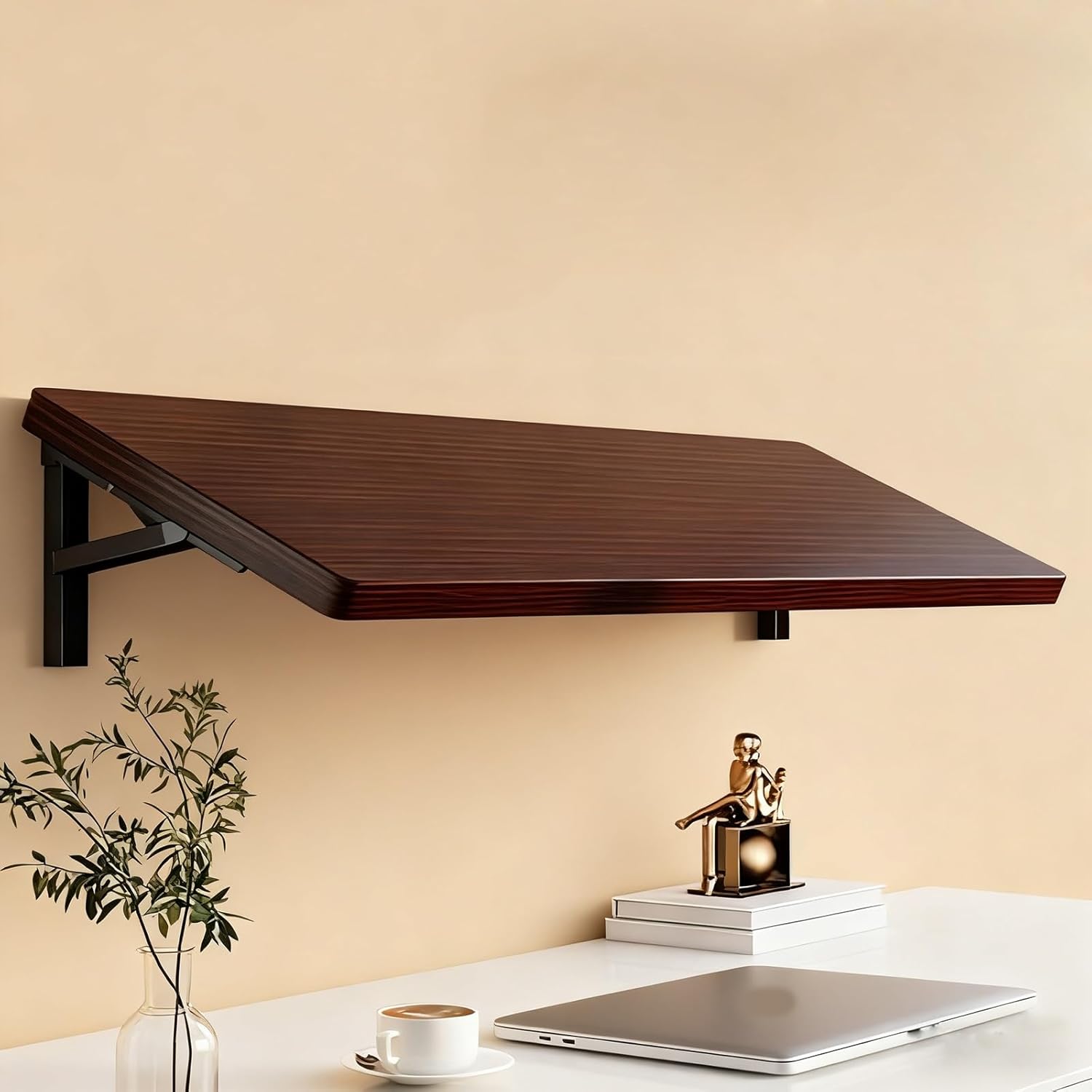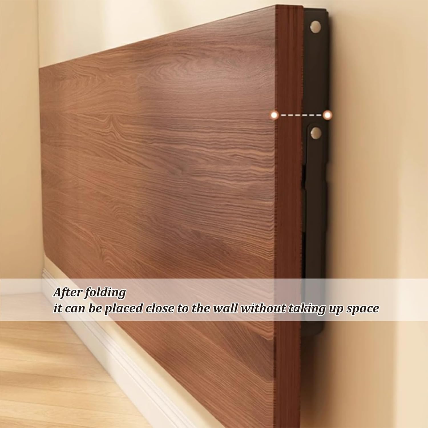 Retro Minimalist: Fold down desk features a walnut-colored finish, creating a soft, smooth surface with clear, beautiful grain, reminiscent of a natural landscape painting. It adds a touch of understated luxury and elegance to any room