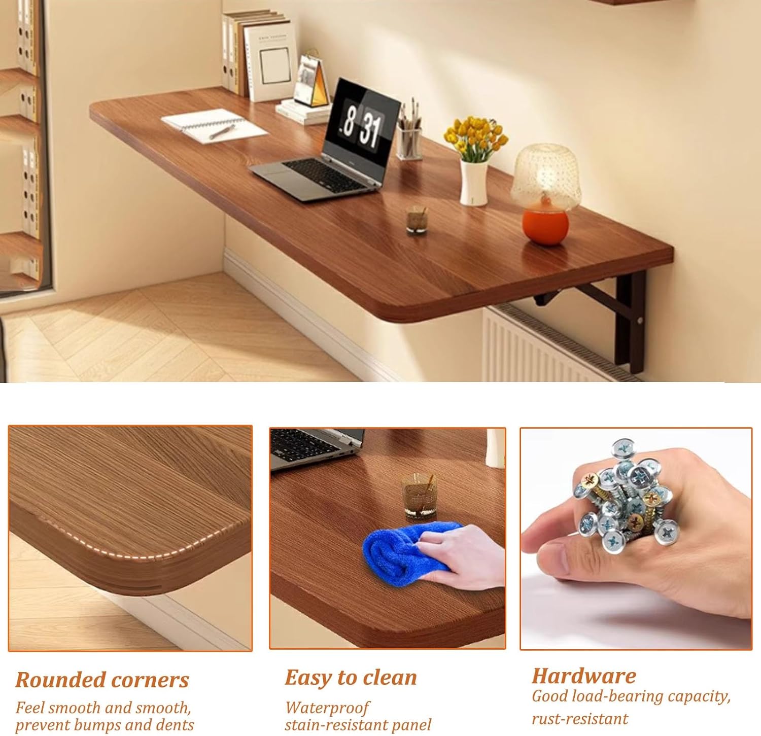 Sturdy and Durable: Our foldable floating table features two high-quality metal brackets. The triangular mechanical structure ensures stability and durability, making it durable enough to withstand daily use. Rounded corners prevent bumps and dents