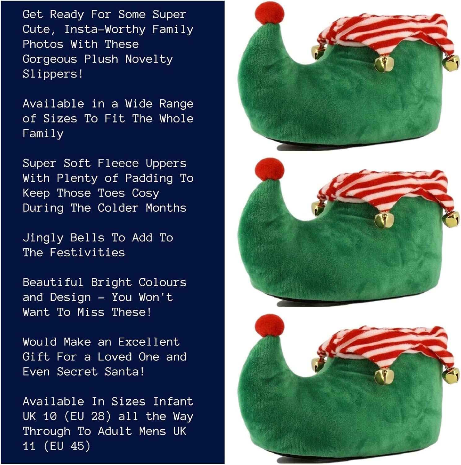 Bring the festive cheer to your home with these adorable Christmas Elf Matching Slippers! These cosy novelty slippers feature a pom pom design and jingle bells, perfect for getting into the holiday spirit. Available in adult and kid sizes, they make a delightful gift for the whole family. Snuggle up by the fire in matching elf slippers and create cherished memories this Christmas. The soft, plush material provides ultimate comfort, whilst the non-slip soles offer traction on various surfaces. Spread joy and laughter with these whimsical slippers – an ideal Secret Santa present!