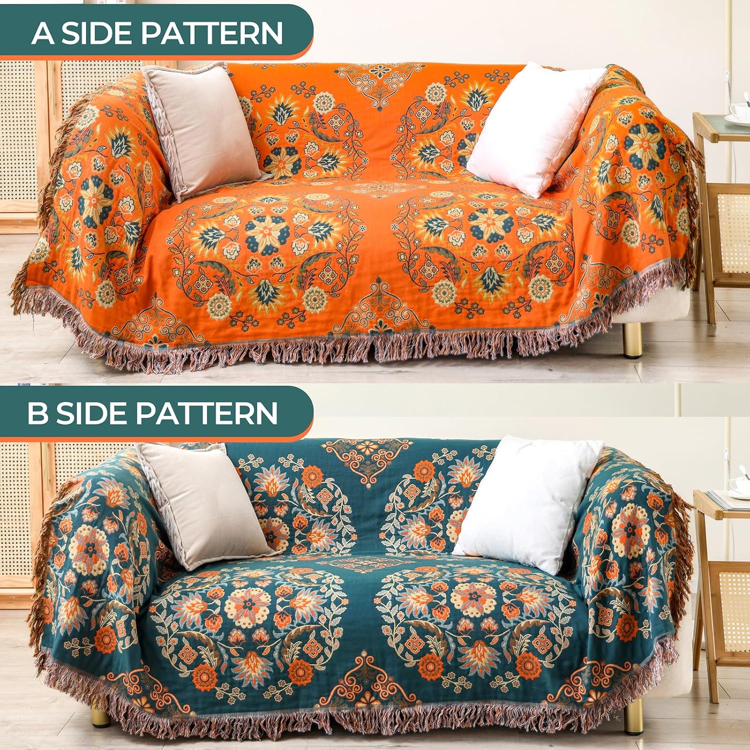 Quality & Safety: Made with high-end materials suitable for babies, this cotton throw blanket ensures the safety and health of your family’s skin. The front and back of our Bohemian blanket features beautiful animal or floral geometric patterns combined with vibrant colors.