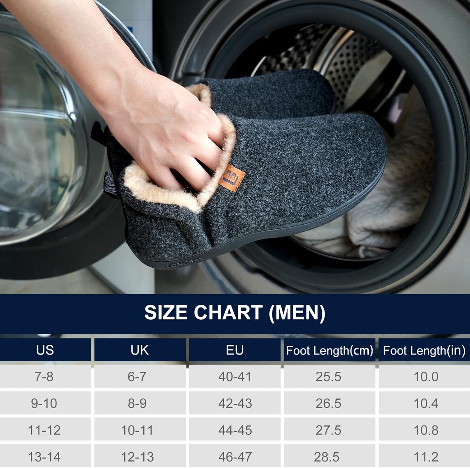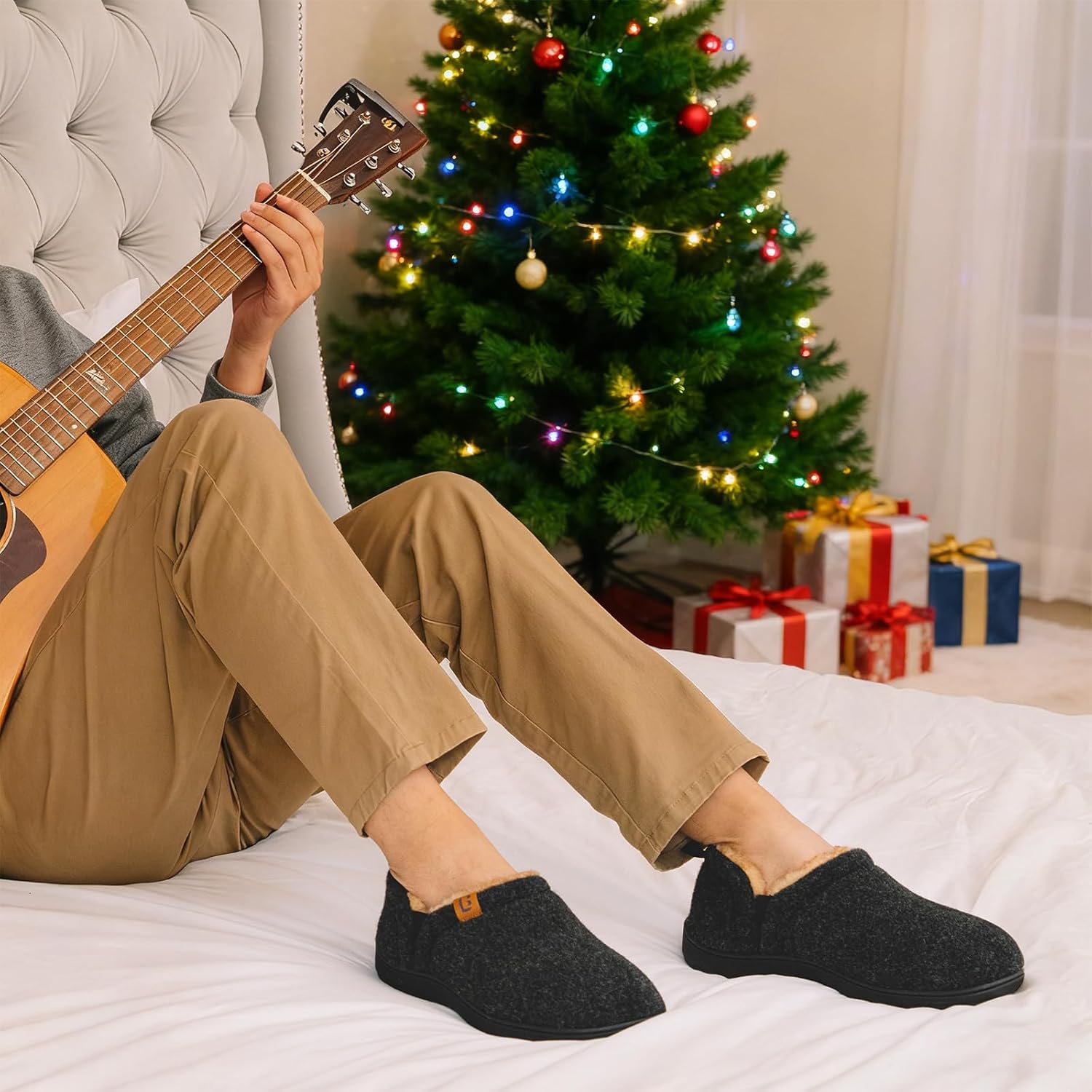 Customers find these slippers comfortable, warm, and of good quality, with one noting they’re thick enough to keep feet warm. The slippers are lined with soft plush fleece and provide a nice fit, with one customer mentioning there’s plenty of room to wiggle toes. Customers consider them excellent value for money and appreciate their appearance, with one noting they look more expensive than they are. Opinions about size are mixed, with some finding them perfect while others say they run a bit big.