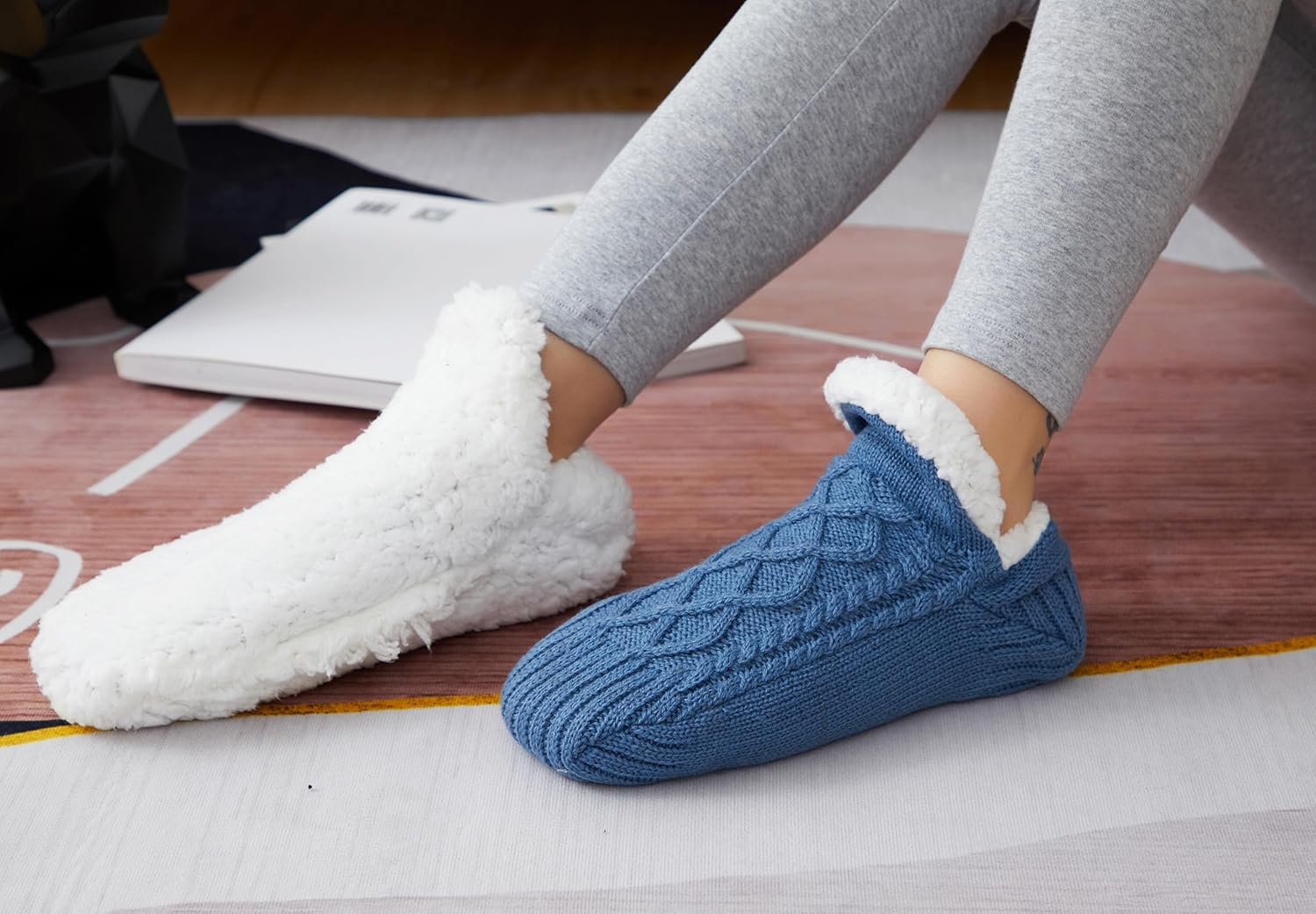 Customers find these slippers cozy, soft, and fluffy, with excellent warmth and quality. They are comfortable and look lovely, offering good value for money. The size receives mixed feedback – while some say they fit comfortably with or without normal socks, others find them too narrow. The slip resistance also gets mixed reviews, with some finding the non-slip feature good while others report they barely stay on the feet.