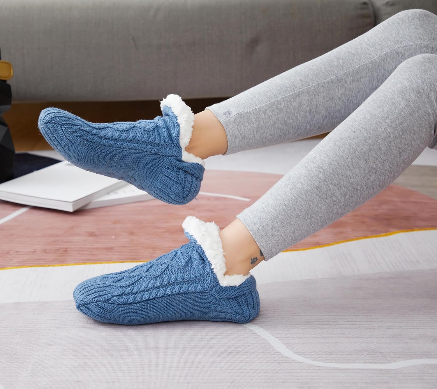 Customers find these slippers cozy, soft, and fluffy, with excellent warmth and quality. They are comfortable and look lovely, offering good value for money. The size receives mixed feedback – while some say they fit comfortably with or without normal socks, others find them too narrow. The slip resistance also gets mixed reviews, with some finding the non-slip feature good while others report they barely stay on the feet.
