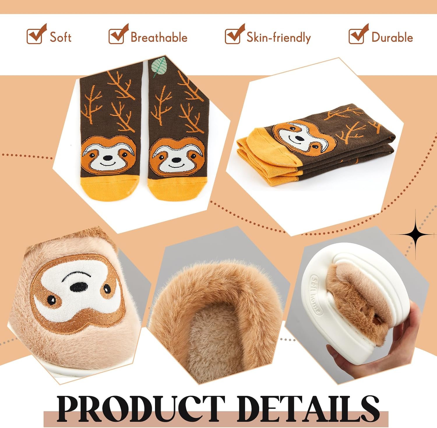 1 pair of sloth slippers