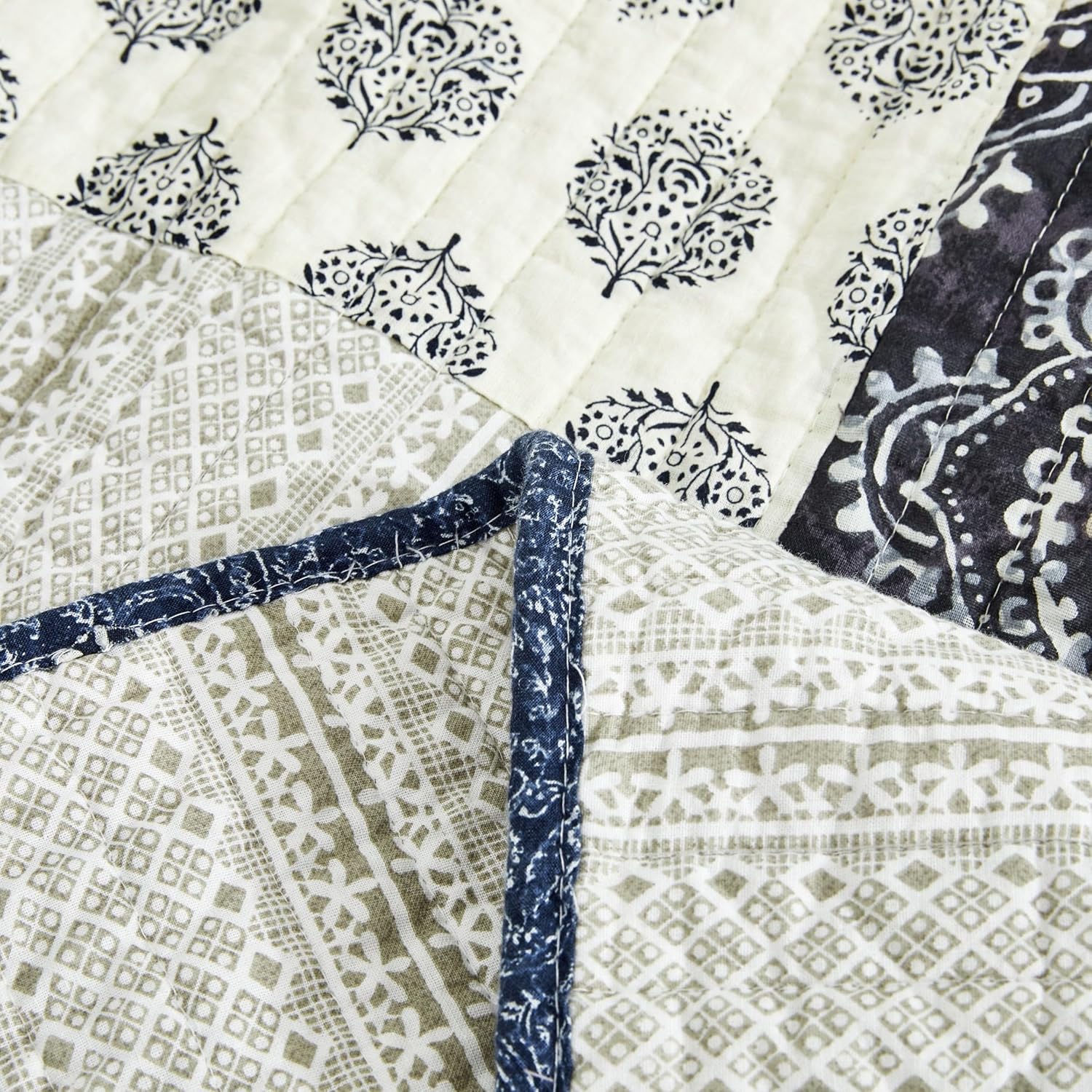 Deep Denim Blue and Beige/Ivory Paisley Patchwork: The sophisticated design elevates the ambiance of your space, and could even become a conversation piece, all while providing the comfort you expect from a high-quality blanket.
