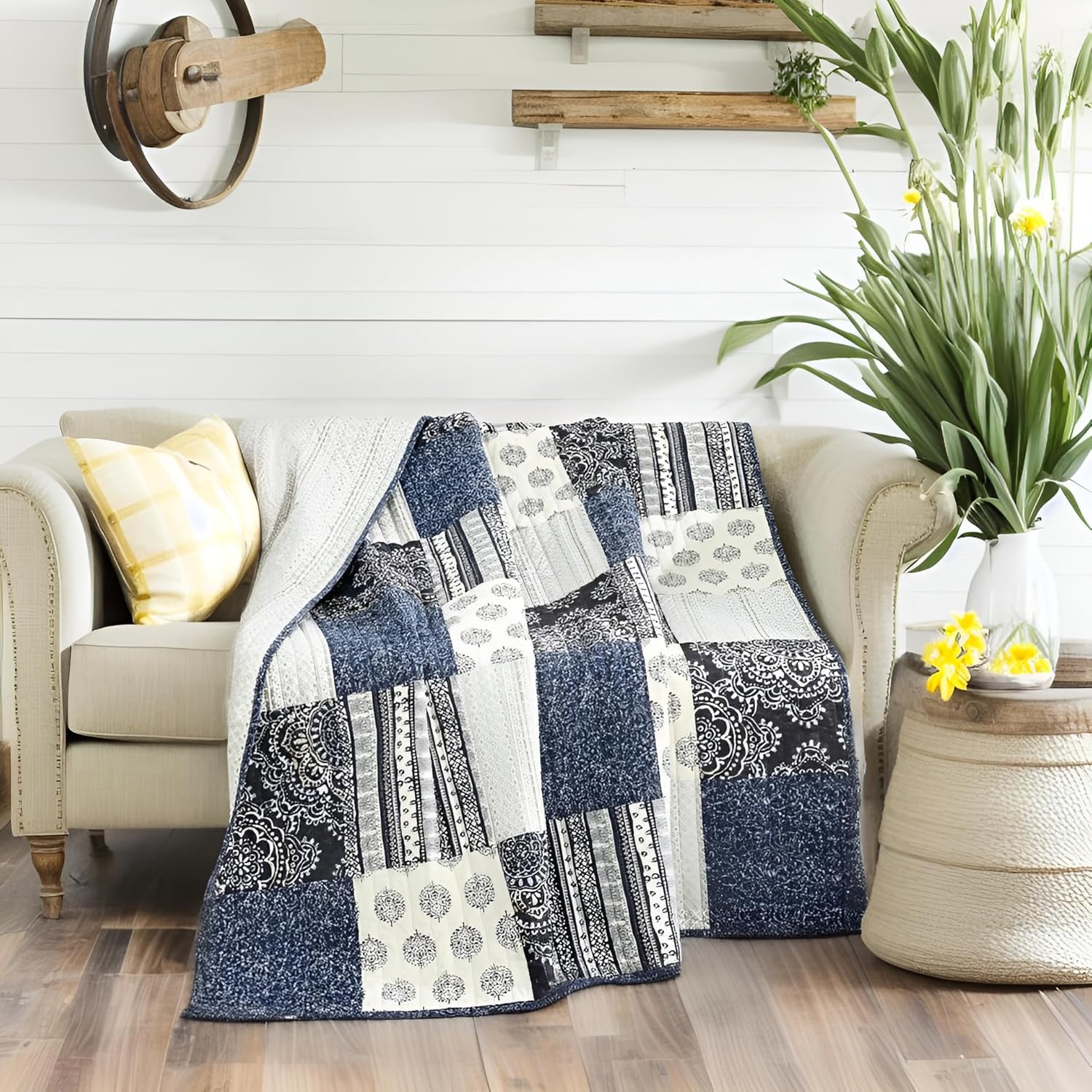Deep Denim Blue and Beige/Ivory Paisley Patchwork: The sophisticated design elevates the ambiance of your space, and could even become a conversation piece, all while providing the comfort you expect from a high-quality blanket.