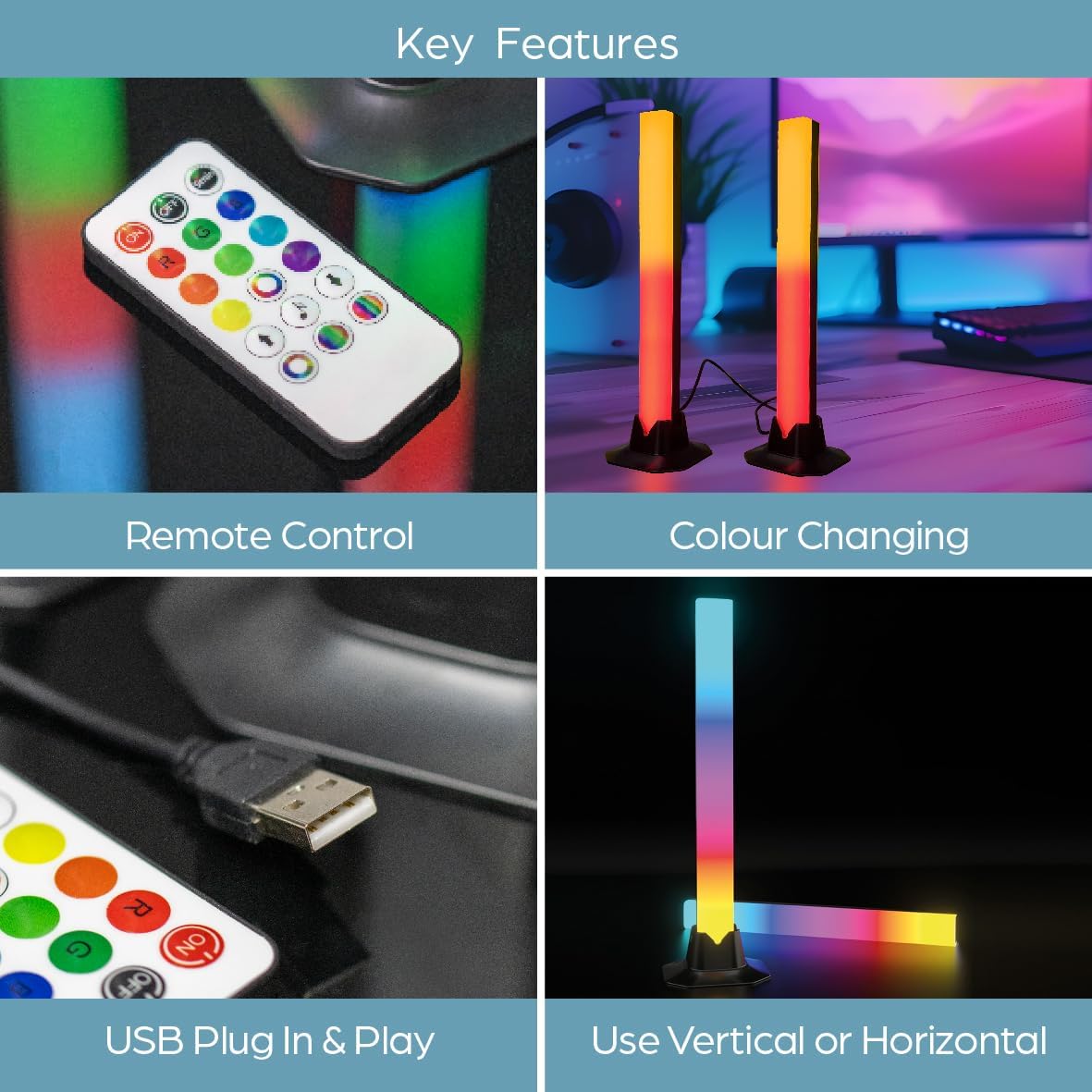 GREAT GAMING ACCESSORY – The lively nature of the lights combines with their practicality to make them a great desk accessory for gamers. Each light bar has its own base that it can securely stand in, allowing one to be placed each side of a PC monitor or screen.
