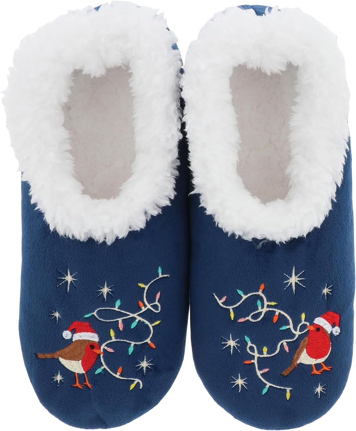 Celebrate the wonderful addition to christmas with the Red breasted Robin Christmas Snoozies! With a beautiful design on the front that just sings christmas combined with the lovely Sherpa Fleece lined insides, these snoozies make a lovely gift or fantastic self purchase. With Non-Skid Soles to match we are sure you can use these as a stocking filler or as a great way to keep comfy in the morning!