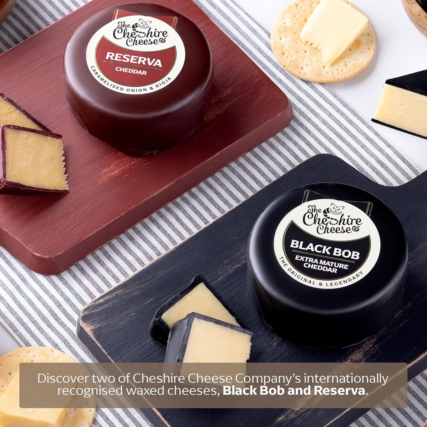 AWARD-WINNING CHEESE, BISCUITS AND WINE – This wine gift set includes their internationally recognised waxed cheeses Black Bob Extra Mature Cheddar, Reserva Caramelised Onion and Rioja Cheddar, alongside Caramelised Red Onion Biscuits from their small-batch biscuits range, and a full-size bottle of Finca Del Alta Argentinian Malbec Red Wine (75cl).