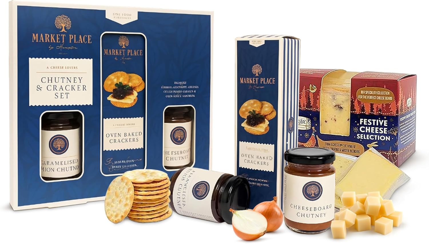 Hampton Chutney’s & Crackers Gift Set: Delicious Cheeseboard Chutney 190g and Caramelized Onion Chutney 190g preserves to get your testbeds tingling & 83g Cracker Round – presented in a stylish Gift Box for the cheese lover.