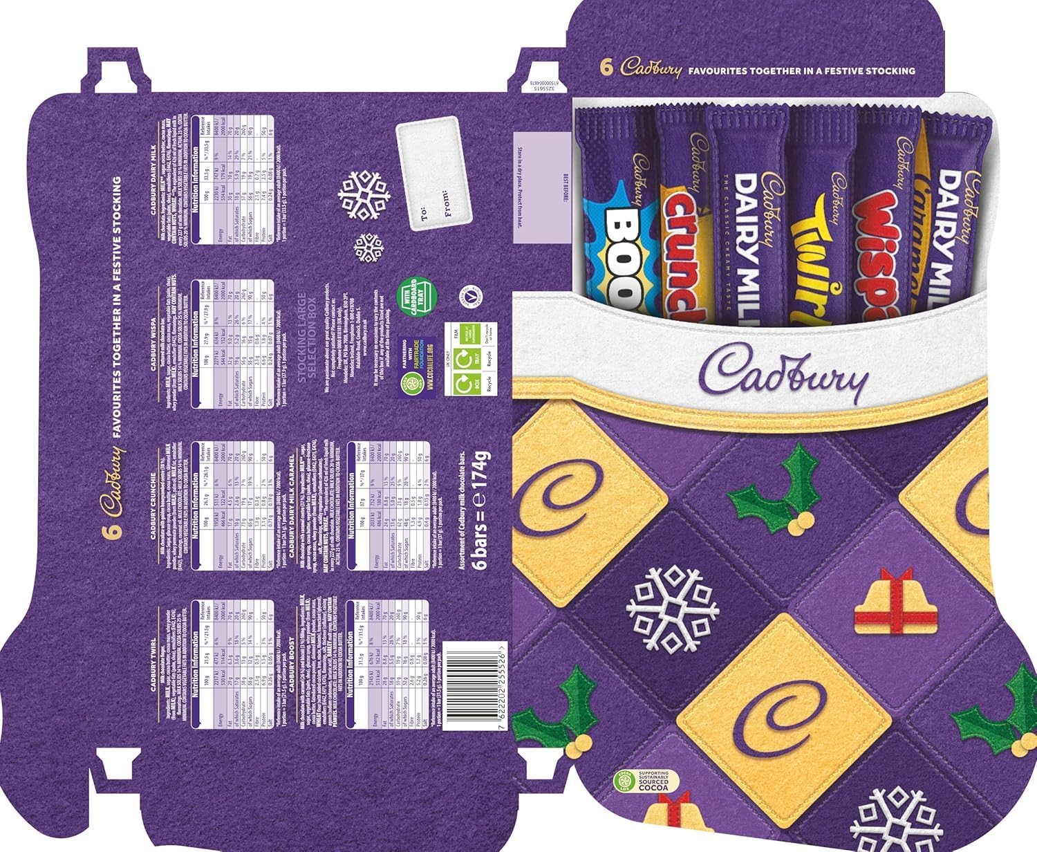 Cadbury Chocolate Stocking Selection 4 Boxes with Unique Topline Christmas Card – 179g makes the ideal Christmas sweets for any chocolate lover, just make sure you get it in time to enjoy it on the run-up to Christmas. One-of-a-kind Christmas chocolates for kids from Cadbury this season of giving. The must-have Christmas chocolate box this year. A 179g box of Cadbury All I Want for Xmas chocolate sweets bulk featuring six of your favourite treats – 1 Cadbury Double Decker, 2 x Cadbury Dairy Milk, 1 Cadbury Crunchie, 1 Cadbury Wispa and 1 Cadbury Twirl chocolate bars for Childrens.