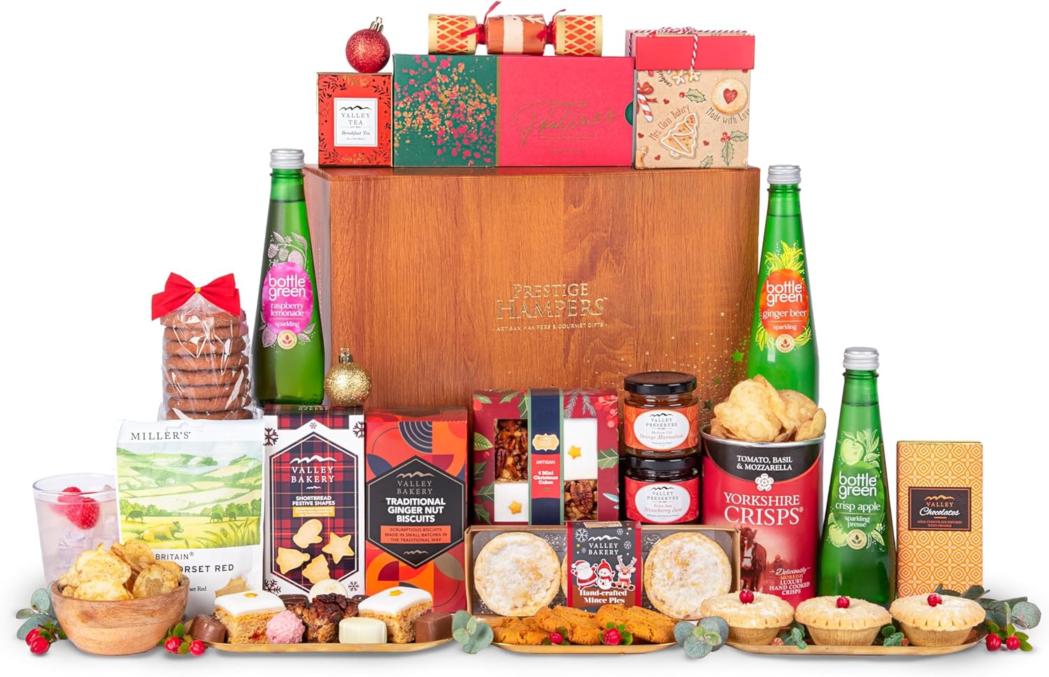 🍪 Artisan Bakery & Savories: Savor delicious Artisan Mince Pies, Festive Shortbread Shapes, Mini Cakes, and Grate Britain Cheese Crackers with Yorkshire Tomato, Basil & Mozzarella Crisps.