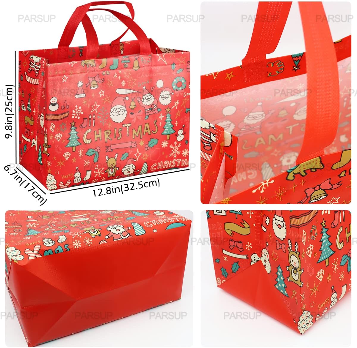 IDEAL FOR GIFT WRAPPING DURING CHRISTMAS HOLIDAY: These Christmas Tote party bags are very suitable for most sizes of gift packaging, you can use it for Christmas parties, holiday gifts, Christmas gift packaging, Christmas decorations, wine bottle gift packaging, large gifts, friend gift bags, hospitality bags, they can hold any gift for Christmas or for kids.