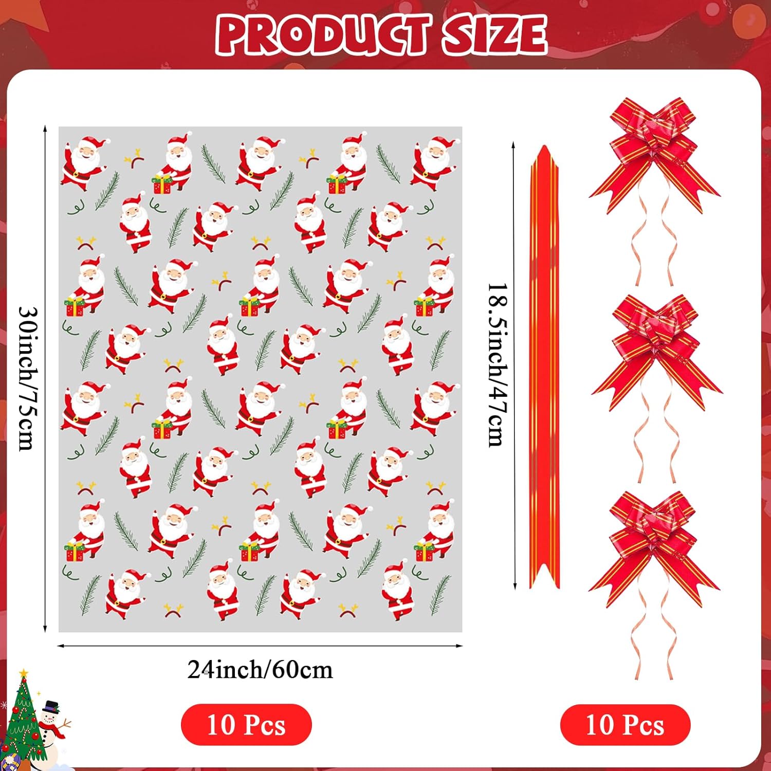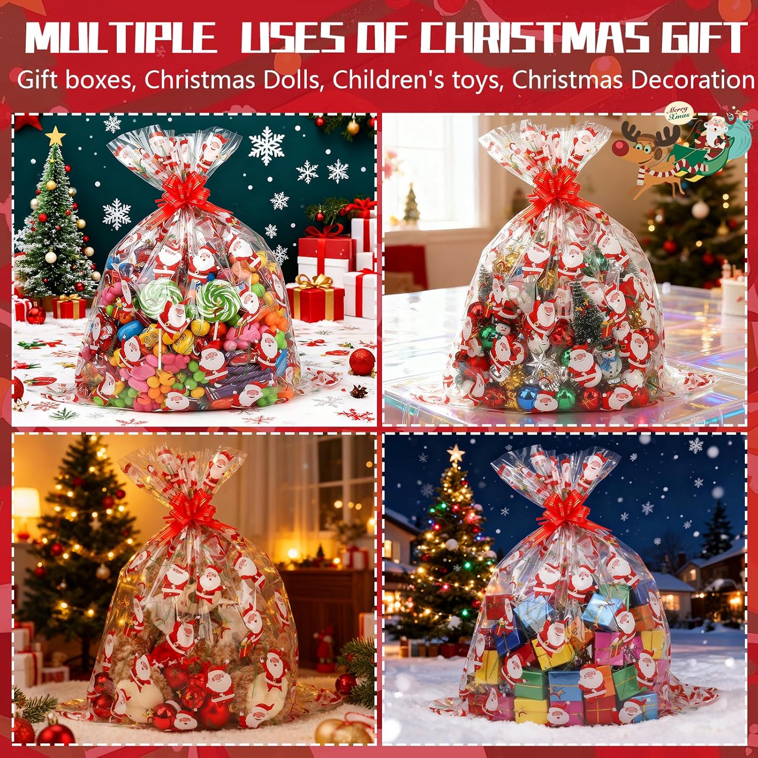 Festive Santa-Themed Christmas Gift Bags: Make your holiday gifts stand out with these 24×30-inch Christmas cellophane wrap bags, featuring a vibrant red Santa Claus design. Perfect for Christmas presents, party favors, and festive decorations, these large cellophane bags for gift baskets add a cheerful touch to any gift.