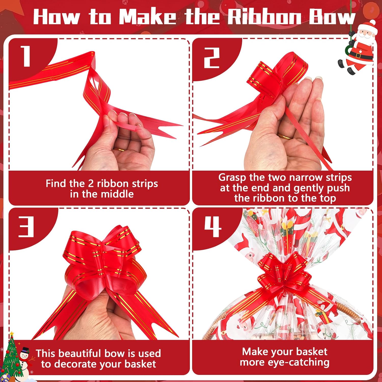 Included Pull Bows for Effortless Style: With 10 easy-to-attach Pull Bows included, you can instantly upgrade your gift basket bags cellophane wrapping. No need for additional ribbons—simply secure the bows for a polished, professional look that saves time and effort.