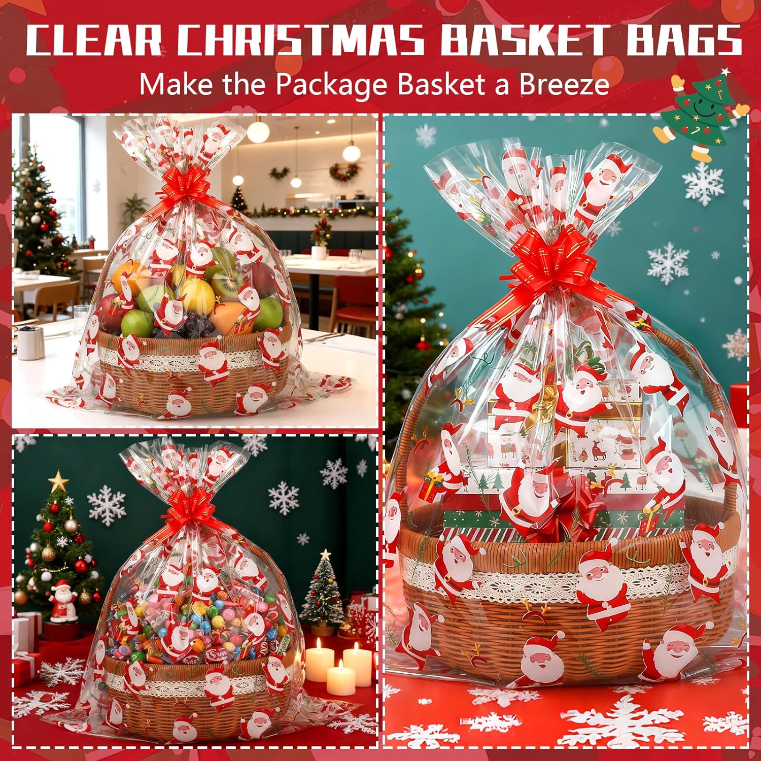 As a top-tier choice among large cellophane bags for gift baskets, our offering stands out with its combination of size, design, and included accessories. Unlike flimsy alternatives, these christmas plastic bags are reusable and eco-friendly, reducing waste while delivering premium aesthetics. Backed by a satisfaction guarantee, they ensure your holiday preparations are stress-free and memorable. Shop now for the ultimate in gift basket bags cellophane—your go-to solution for festive, functional, and affordable holiday decorations!