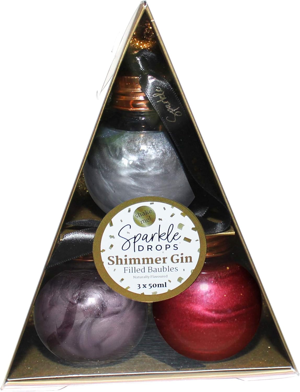 3 Beautifully Shimmery Gin filled Baubles (50ml each) in a gorgeous gift pack. 37.5% vol. Ideal as a gift or Tree accessory, we use the highest quality natural flavourings so that they taste as good as they look. Perfect for the festive season. Refillable PET baubles. Use Each Year, each bauble is a double shot. 1.8 units per bauble. Flavours included are: Iced Raspberry, Winter Berry and Violet.