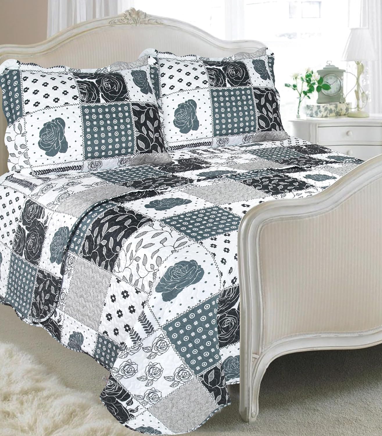 Matching pillow shams: Comes with two matching pillow shams with the same patchwork design to complete the look of your bedding.