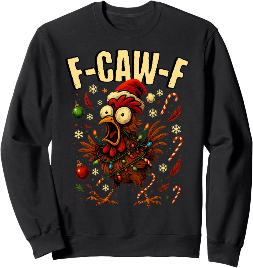 Funny F-CAW-F Christmas Chicken Xmas Lights Santa hat F-CAW- Sweatshirt