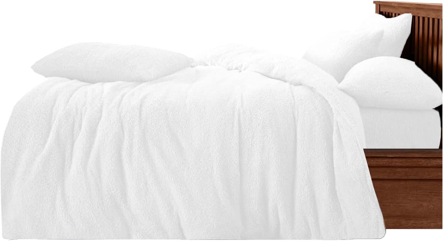 SUPER SOFT AND SNUGGLY BEDDING SET: This teddy duvet cover crafted from fluffy, insulating material, this stunning 3pc duvet set is the modern bed set addition you have been looking for.