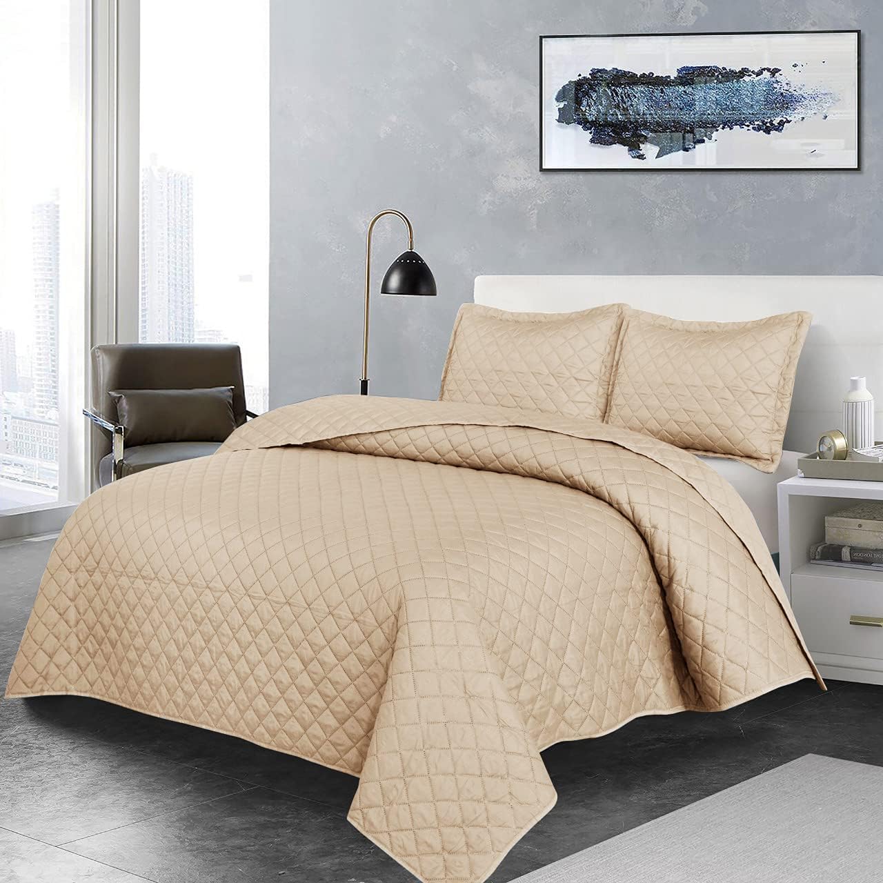 Premium Material: 100% polyester 220 gsm, fully quilted cover Comfortable Bedspread Bed Throw Blanket. Lovely embossed pattern fit for all age’s bedrooms living room sofa throws. Ultra-light modern design bedspread with ultrasonic quilting