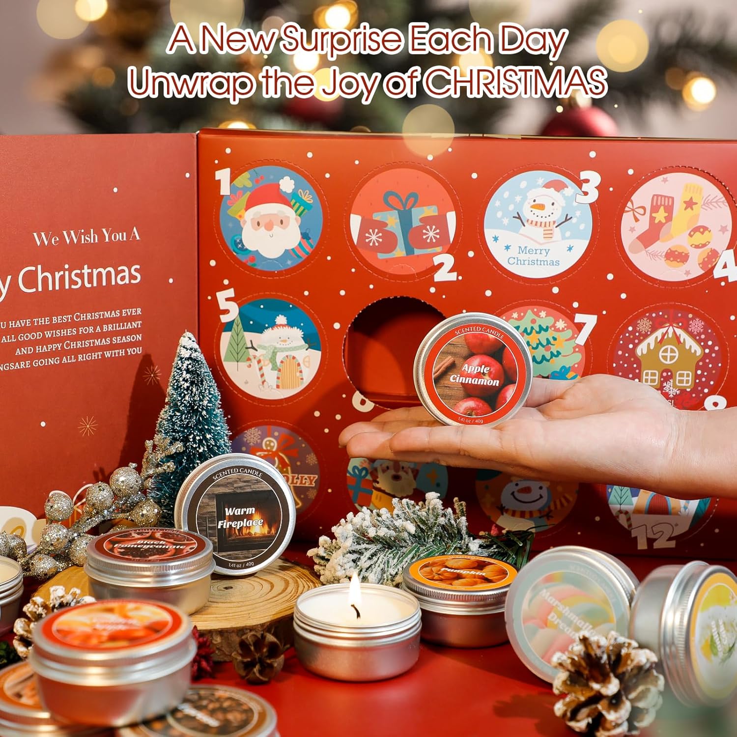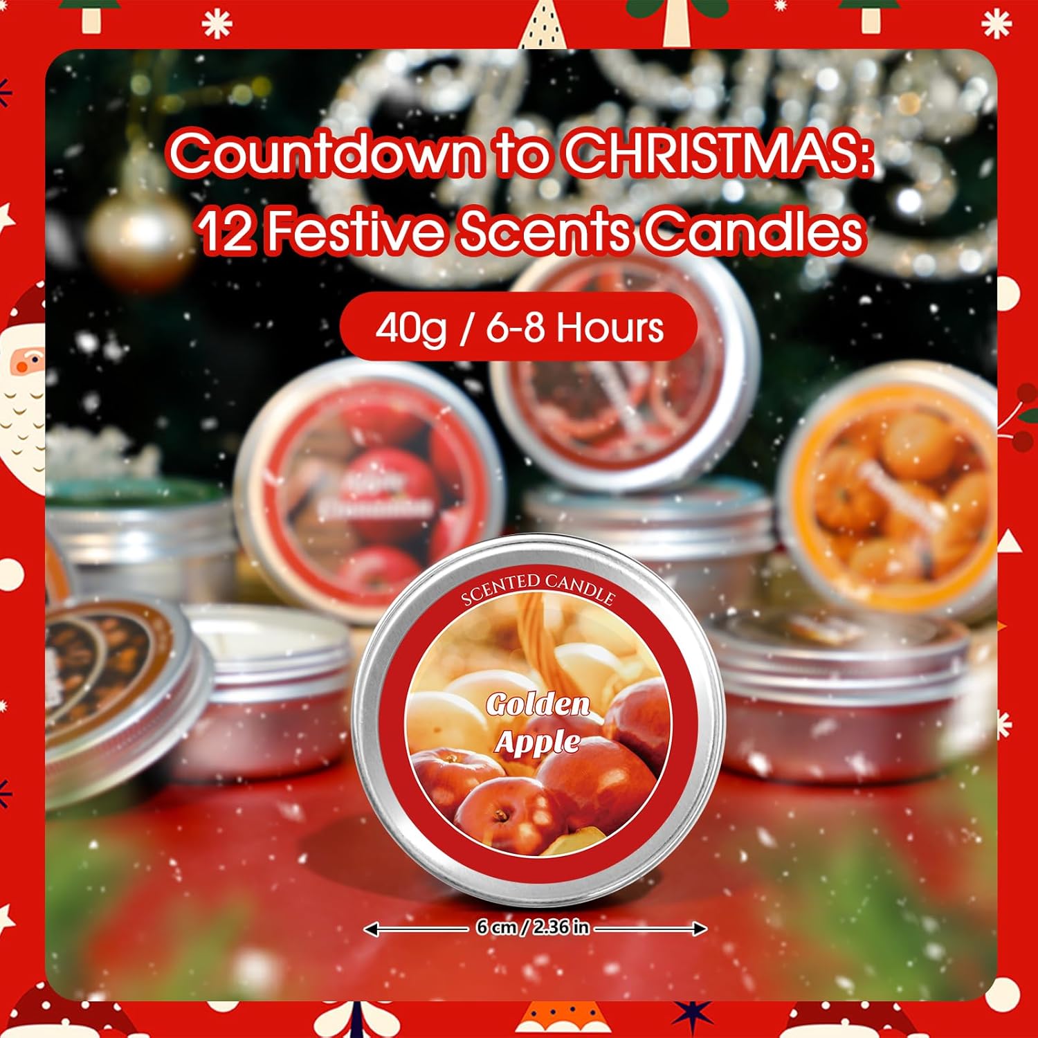 Scented Candles 12 Set – A festive featuring 12 individually packed scented tin candles to celebrate each joyful December day